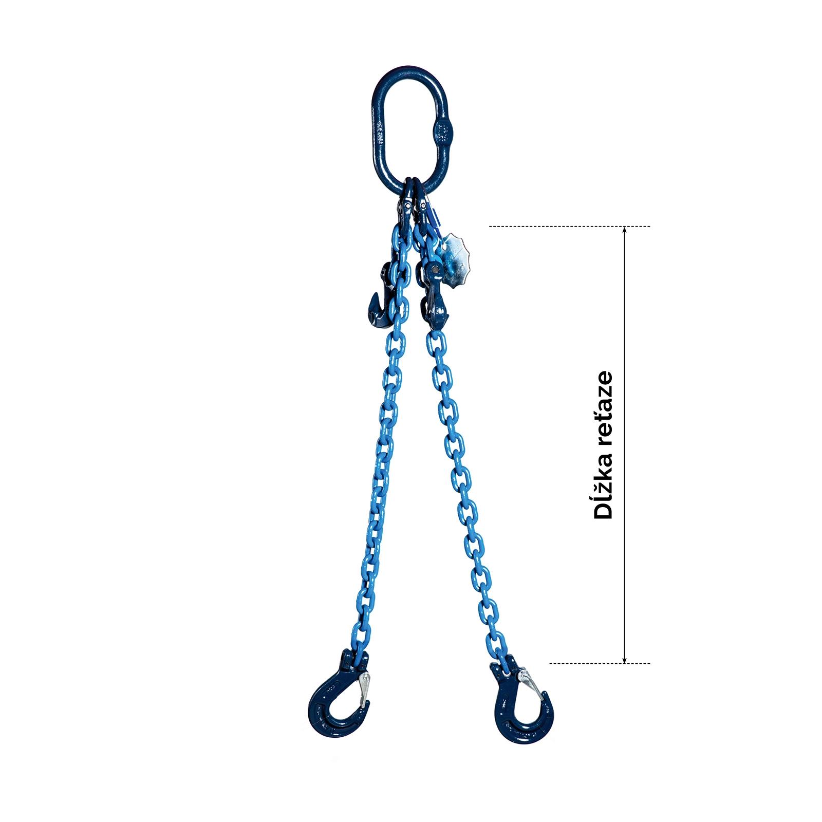 Dvoupramenný řetězový vazák v provedení závěsná hlava a ukončení 2 x hák řetězový s pojistkou, každý úvazek u nás automaticky obsahuje zkracovací háky pro přizpůsobení délky řetězu. Řetězový vazák, závěs standardně dodáváme v délce řetězu od 0,5 m do 8 m. Užitkové délky v e-shopu jsou dělené po metry a půl metry. Pokud máte zájem o jinou specifikaci úvazku třeba nás kontaktovat a vyrobíme Vám řetězový vazák, úvazek na míru dle Vašich požadavků, pokud to samozřejmě parametry komponentů dovolí. Všechny komponenty k výrobě řetězových úvazků, držíme skladem. Vzhledem k tomu, že se jedná o výrobu na míru, nejsou v e-shopu uvedené skladové zásoby hotových řetězových úvazků, závěsů. Délka výroby je ovlivněna o jaký úvazek se jedná, délka úvazku a množství objednaných vazáků, úvazků. Proto garantujeme výrobu minimálně 1ks úvazku nejpozději do 2 hodin.