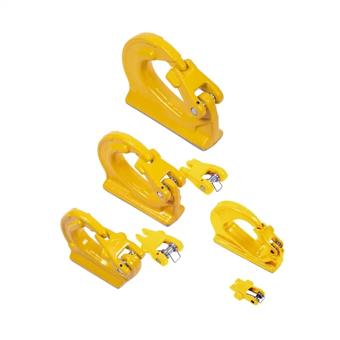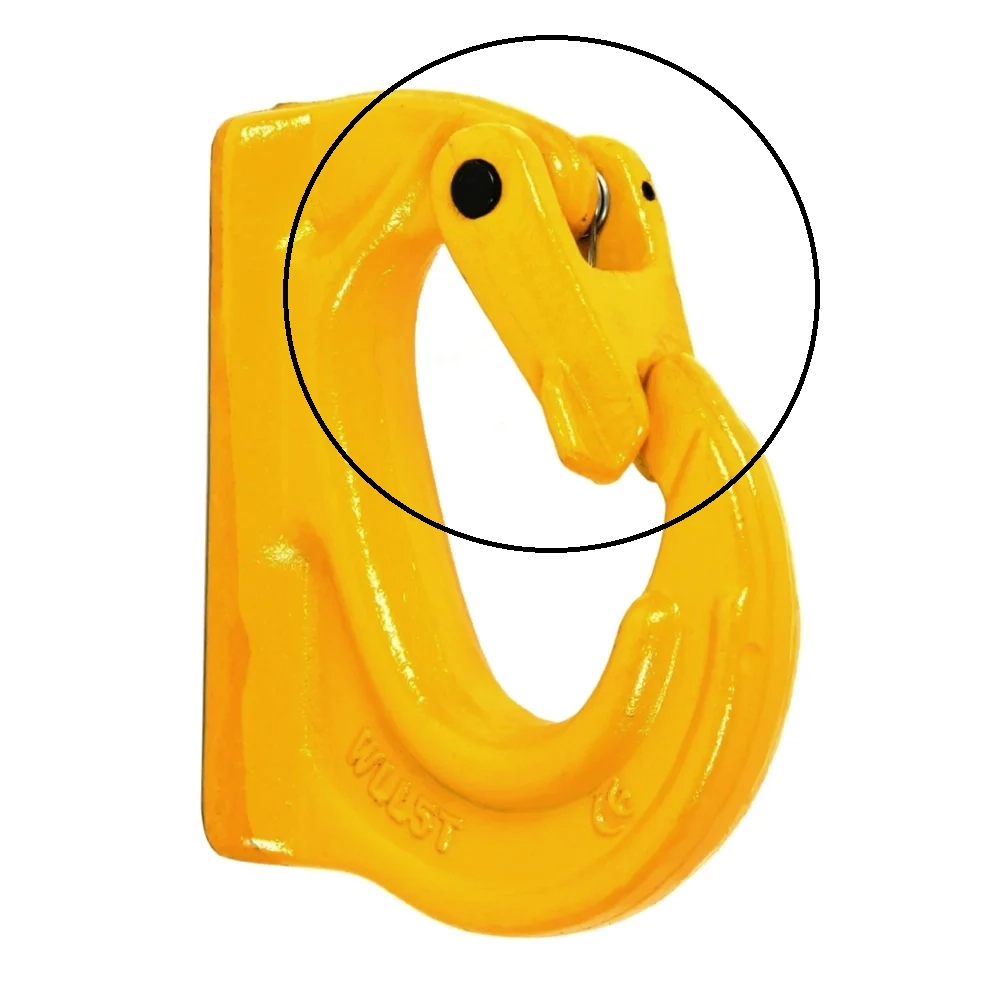 Náhradní pojistka pro navařovací hák vyrobena pevnostní třídě 8. Pojistka háku se skládá ze čtyř částí: Kovaná pojistka, pružina, nýt a kolík. Určená pro navařovací háky různých výrobců, jsou kompatibilní s většinou háků na trhu.Komponenty třídy 8 jsou dodávány v červené nebo žluté povrchové úpravě, každý výrobek je označen výrobním kódem a nosností WLL.