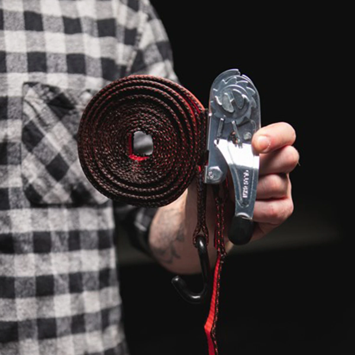 Kvalitní ráčnový mechanismus z odolné oceli zajišťuje vysoký přítlak a přesné napnutí popruhu bez velké námahy. Ergonomická rukojeť usnadňuje manipulaci a umožňuje práci i v rukavicích – ideální pro náročné provozy a časté použití.