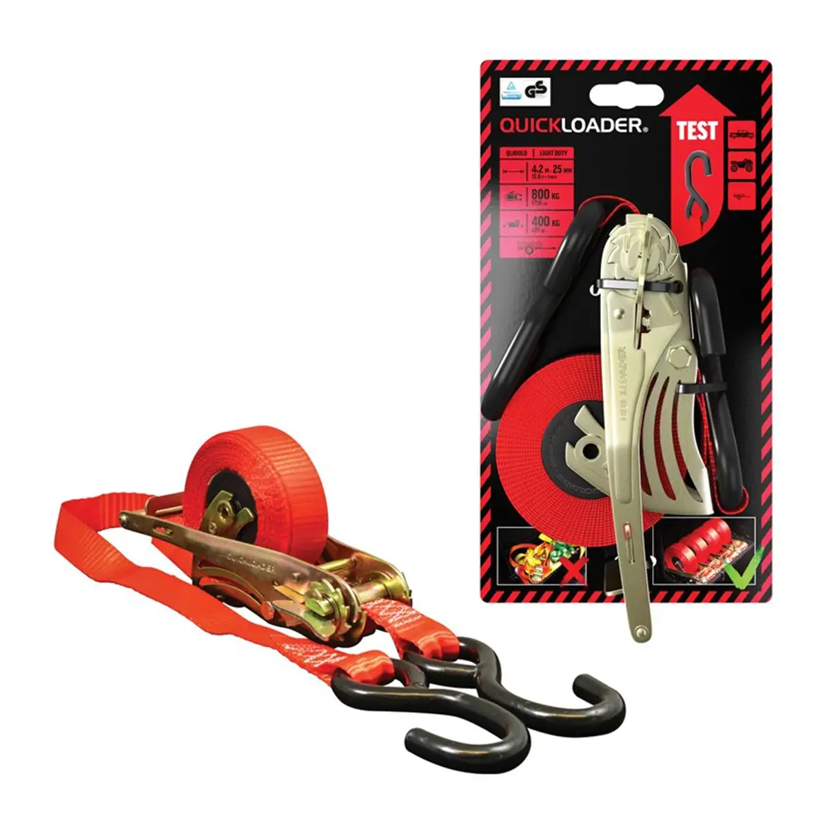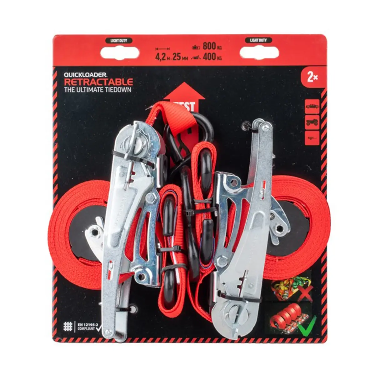 Quickloader Retractable 800 kg je samonavíjecí upínací popruh navržený pro každodenní, pohodlné a bezpečné zajištění lehčích až středně těžkých nákladů. S nosností 800 kg a délkou 4,2 metru představuje ideální řešení pro přepravu kol, nábytku, zahradní techniky, menších strojů či sportovního vybavení. Díky automatickému navíjecímu mechanismu výrazně zjednodušuje manipulaci a šetří čas – žádné motání, uzly ani starosti.