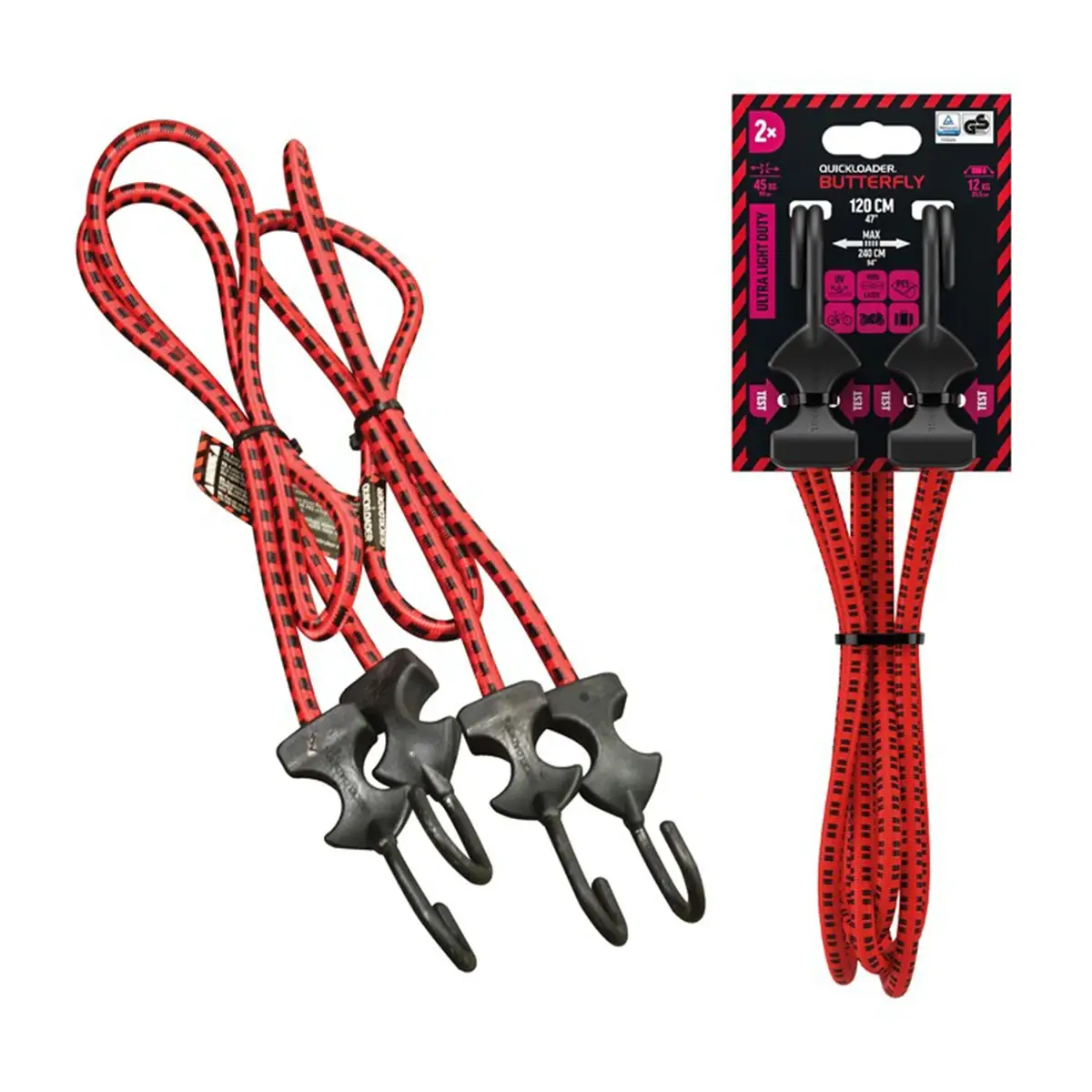 Quickloader Bungee Butterfly umožňuje rychlé a bezpečné zajištění nákladu bez nářadí – stačí zaháknout, napnout a máte hotovo. Perfektní řešení pro každodenní použití doma, v autě nebo při práci.