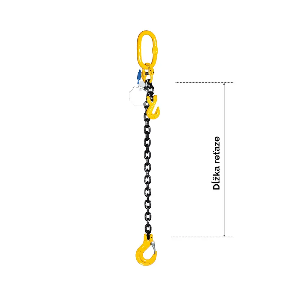 Jednopramenný řetězový vazák v provedení závěsná hlava (oko) a ukončení 1 x hák řetězový s pojistkou, každý úvazek u nás automaticky obsahuje zkracovací háky pro přizpůsobení délky řetězu. Řetězový vazák, závěs standardně dodáváme v délce řetězu od 0,5 m do 8 m. Užitkové délky v e-shopu jsou dělené po metry a půl metry. Pokud máte zájem o jinou specifikaci úvazku třeba nás kontaktovat a vyrobíme Vám řetězový vazák, úvazek na míru dle Vašich požadavků, pokud to samozřejmě parametry komponentů dovolí. Všechny komponenty k výrobě řetězových úvazků, držíme skladem. Vzhledem k tomu, že se jedná o výrobu na míru, nejsou v e-shopu uvedené skladové zásoby hotových řetězových úvazků, závěsů. Délka výroby je ovlivněna o jaký úvazek se jedná, délka úvazku a množství objednaných vazáků, úvazků. Proto garantujeme výrobu minimálně 1ks úvazku nejpozději do 2 hodin.